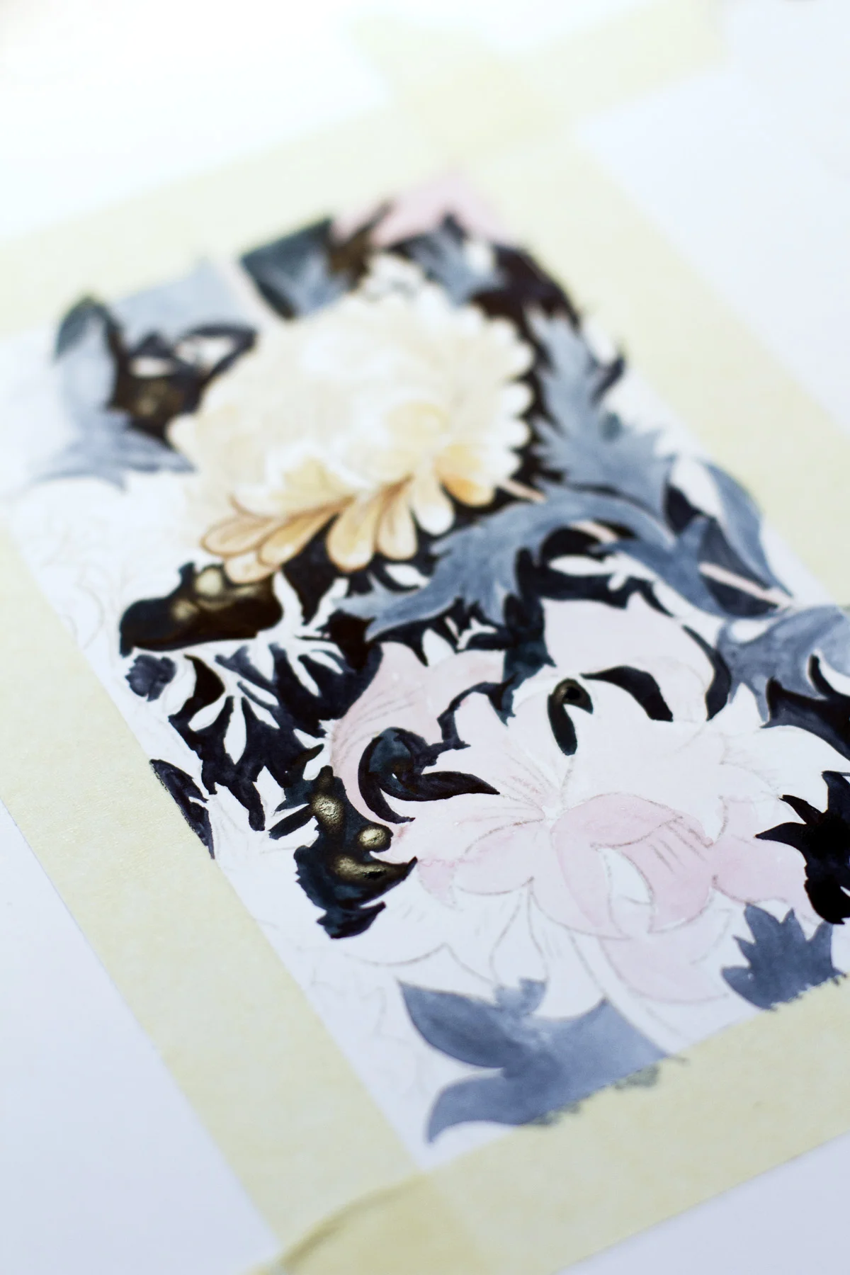This is sneak peek of a watercolor and gouache project for my new Skillshare class I’m working on now. I just wanted to show how the paper holds the layers and you can surprisingly easily combine some elements of classical techniques with liners and whatever possible.