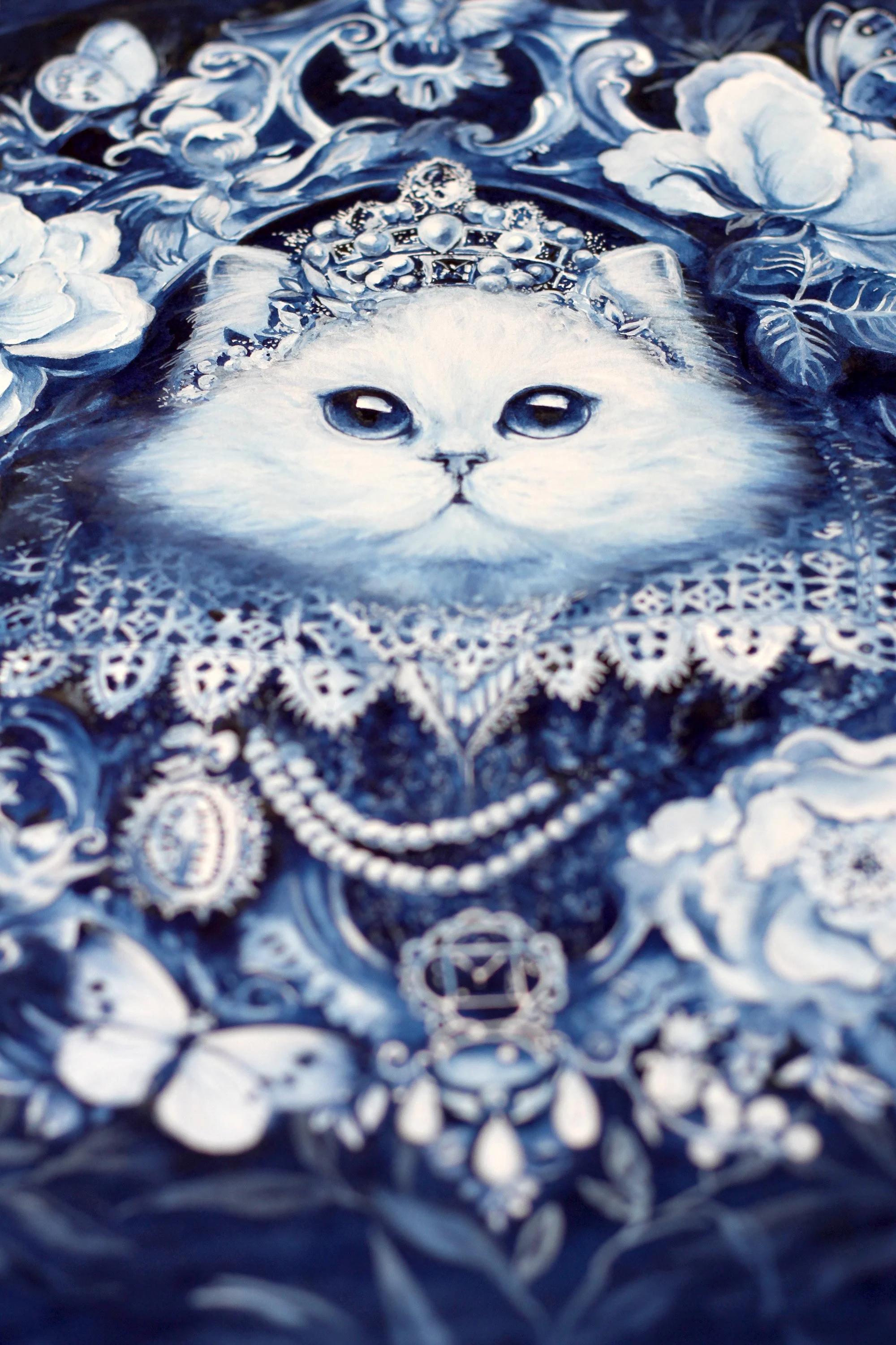 The artwork is inspired by The White Cat (La Chatte Blanche) French literary fairytale by Madame d'Aulnoy.